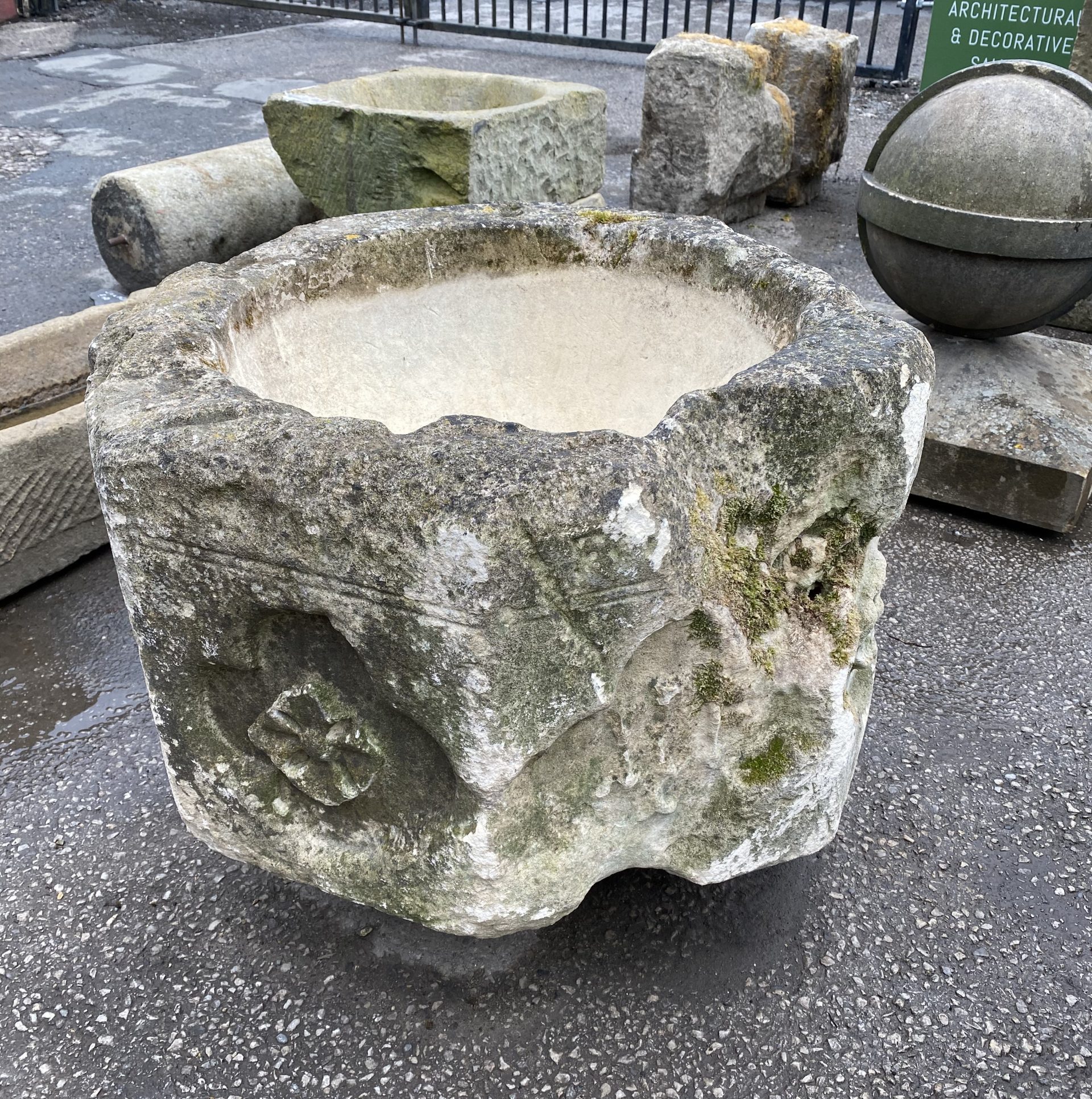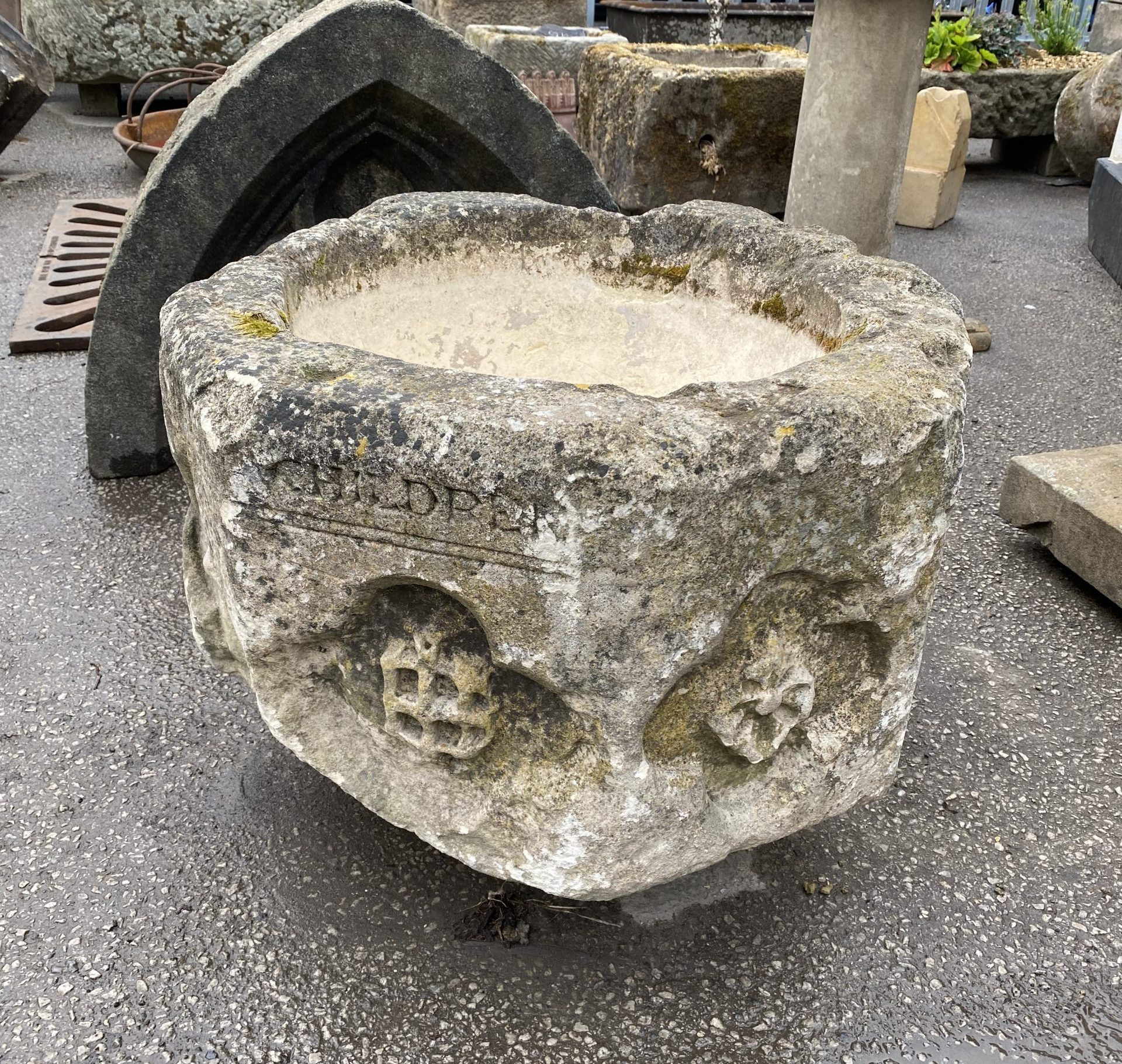 Stone font would make a lovely feature in the garden planted or water feature