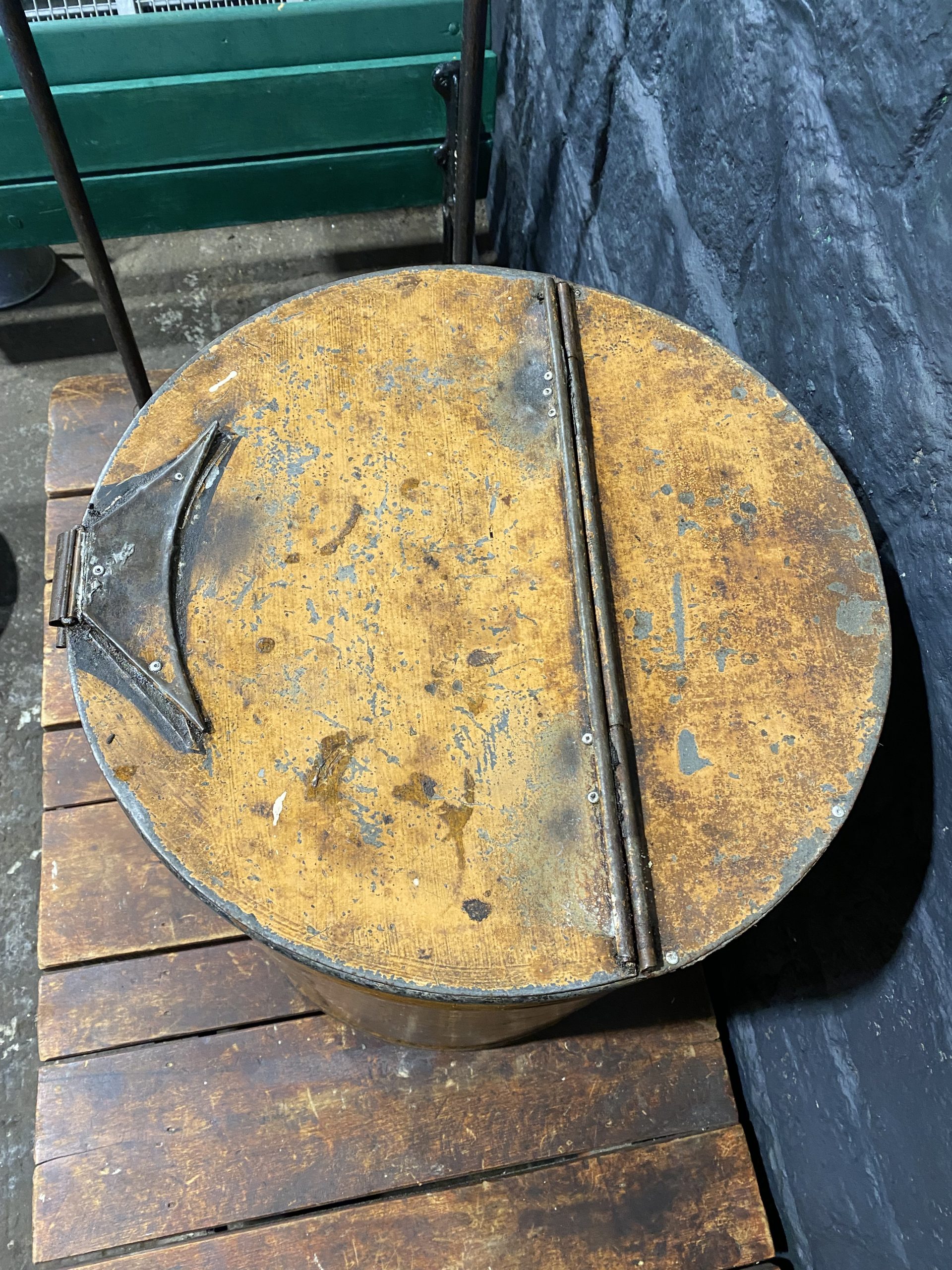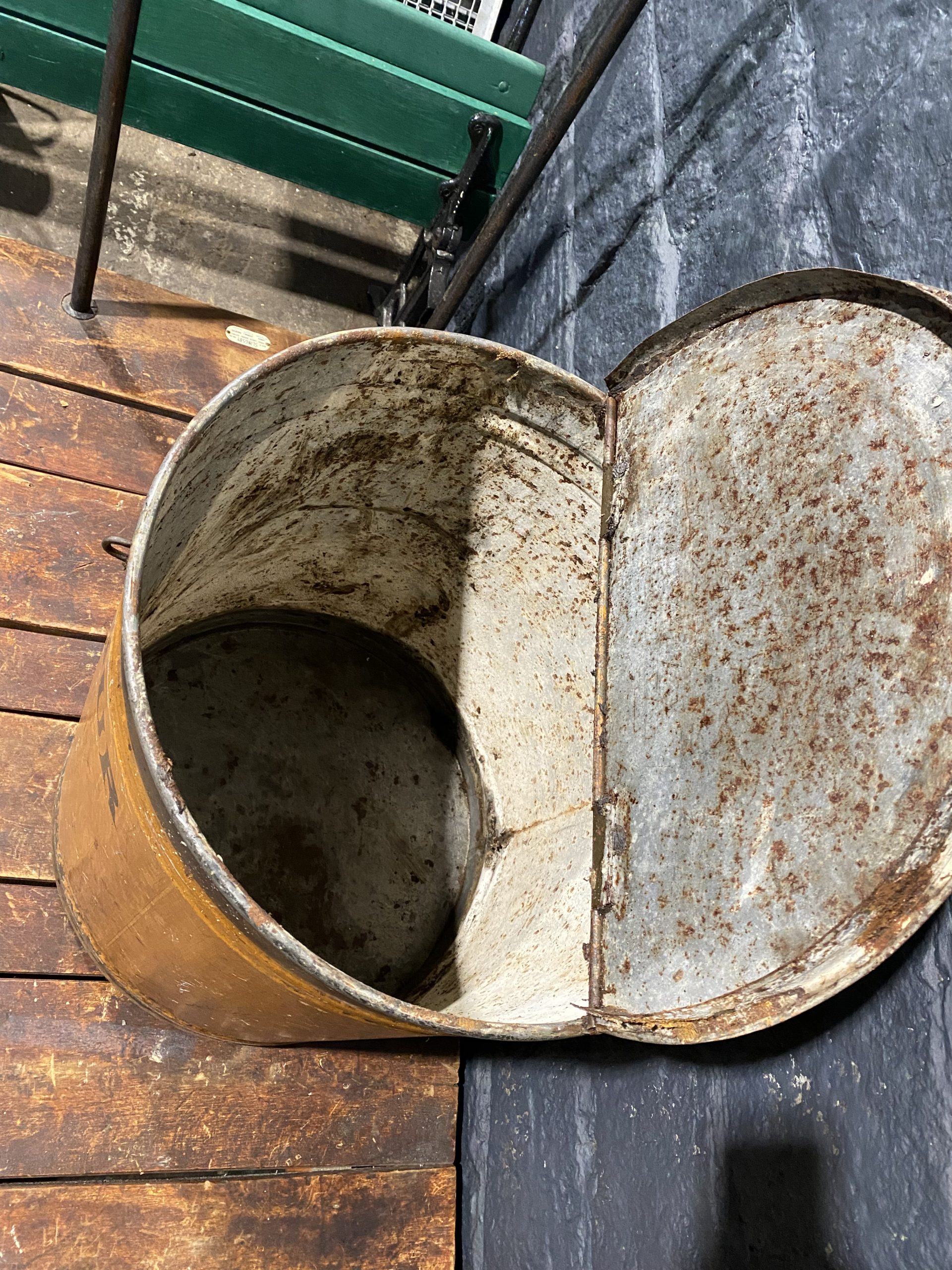 A lovely large Victorian Flour Bin. Age related wear. Approx 24″ tall x 19.5″ diameter